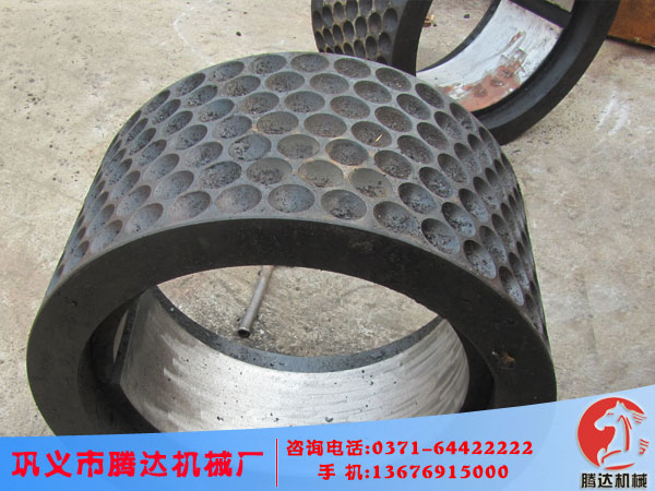 壓球機輥皮是壓球機型煤設備中必不可少的一個重要構(gòu)件,壓球機輥皮決定了壓球機壓制成型的形狀,壓球機輥皮是包括在壓球機輥芯外部的一層表層挖有球窩的圓筒形狀的構(gòu)件。根據(jù)裝配方式的不同分為一體式和分裝式。